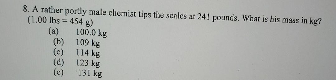 Solved 8 A Rather Portly Male Chemist Tips The Scales At Chegg Com